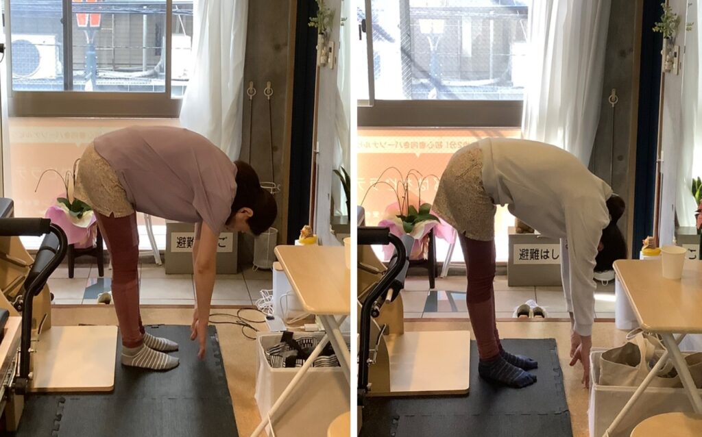 👆背骨が綺麗に丸まっていますね!!お尻の位置もずれることなく前屈ができております✨